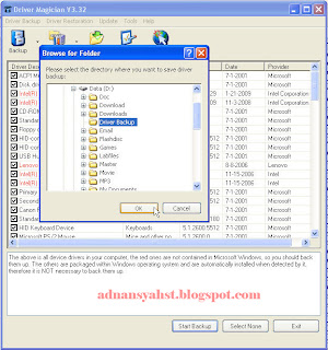 Kadangkala kita sering ingin menginstall ulang komputer kita, tetapi takut jika driver dan perangkat tidak berjalan dengan semestinya misalnya driver-driver perangkat komputer tidak kita miliki. maka untuk mengantisipasinya adalah dengan membackup semua driver perangkat peripheral tersebut. salah satu aplikasi yang digunakan adalah Driver Magician. bisa di download di. http://www.4shared.com/rar/AQbLhT9m/Driver_Magician_v350_Full_Crac.html