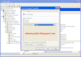 Untuk membuat Disable autorun yaitu dengan cara :